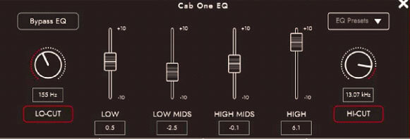 EQ wise, the left cab is EQ’d with a slight scoop to the mids and some additional top end added: