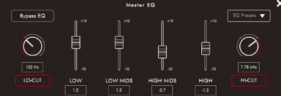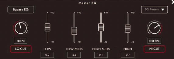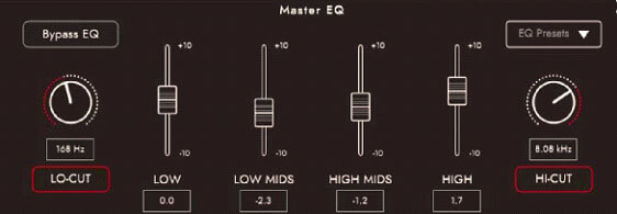 On the master EQ there is a slight scoop on the higher mids to allow the lower mids and low end to really focus. These areas are slightly boosted: