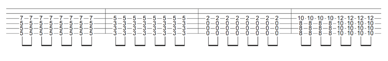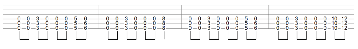 Another great way to add some depth to your simple, one finger power chords is to add an additional 5th at the top of the chord. A power chord is typically made up of a 1, a 5 and an octave which is also a 1. In this method, you’d just stacking an additional 5 on top, essentially giving you a pair of power chords together.