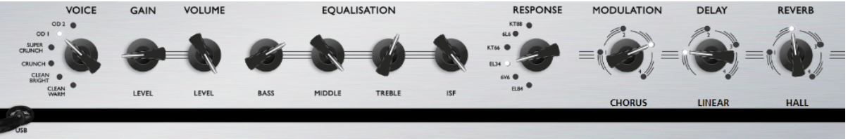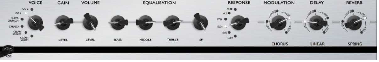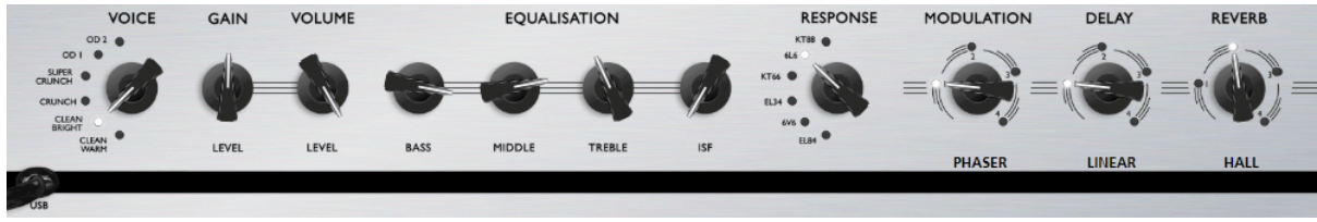 It is a Clean Bright tone paired with the EL34 response. The ISF is set at 50% for the perfect US/UK tonal blend. This tone works best on a Strat style guitar in position 4, single coils in the neck and middle position.