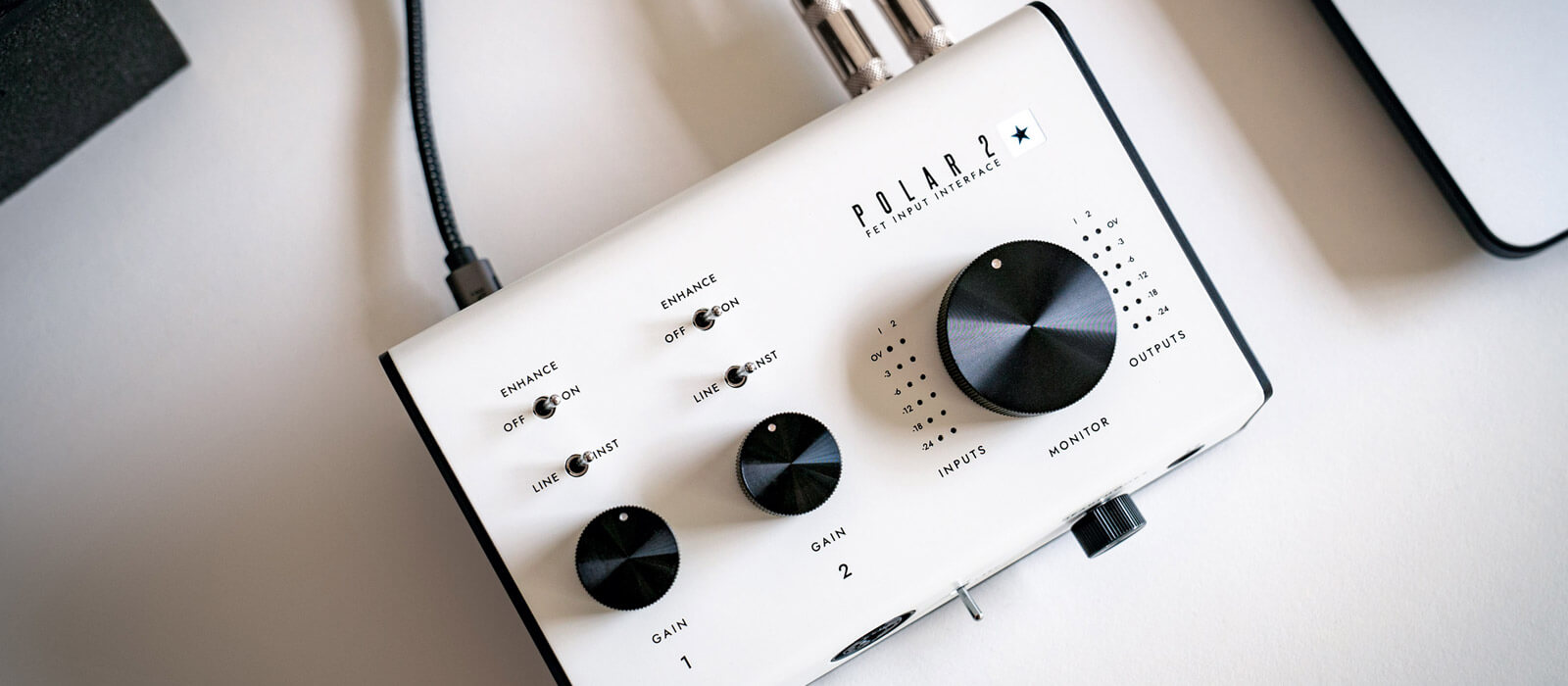 POLAR 2 is a 2 channel USB audio interface built by guitarists for guitarists. It features 2 high headroom FET input channels for instrument, line and microphone, a high output headphone amp, +48V phantom power for condenser microphones, balanced outputs for professional monitoring, visual level meters and the proprietary “Enhance” switch.